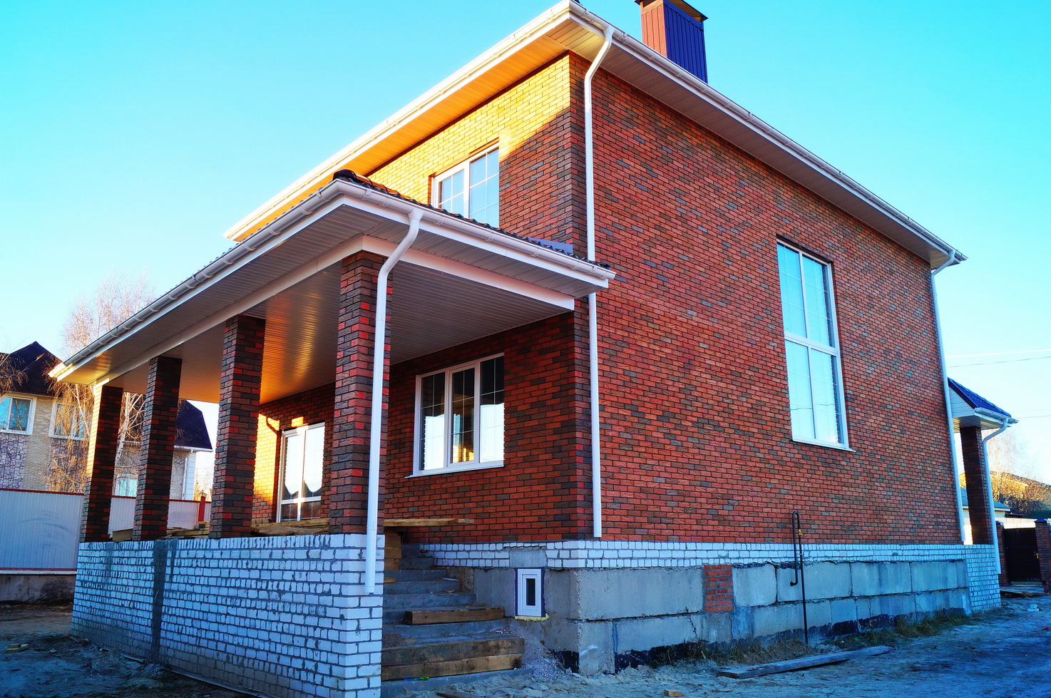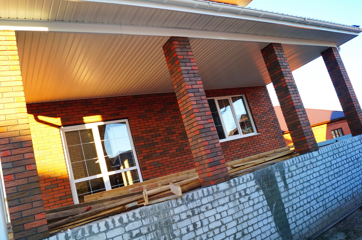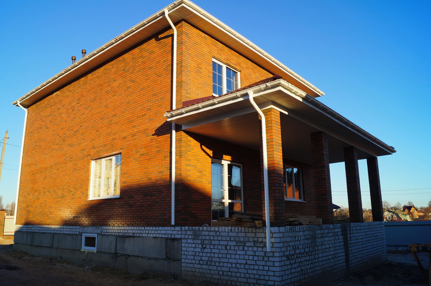 Фундамент блочный. Стены облицовочный кирпич. Крыша металлочерепица.